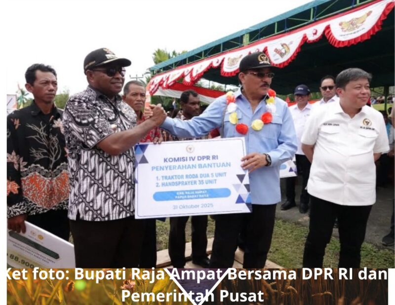 Raja Ampat, Radar Utama.com- Bupati Raja Ampat, Orideko Iriano Burdam, S.IP., M.M., M.Ec.Dev, bersama dengan pimpinan Organisasi Perangkat Daerah (OPD) terkait, menyambut kunjungan kerja Komisi IV DPR RI dalam rangka peninjauan dan diskusi mengenai kondisi pertanian dan peternakan di kawasan transmigrasi Kampung Kalobo, Distrik Salawati Tengah, pada Jumat, 31 Oktober 2025.