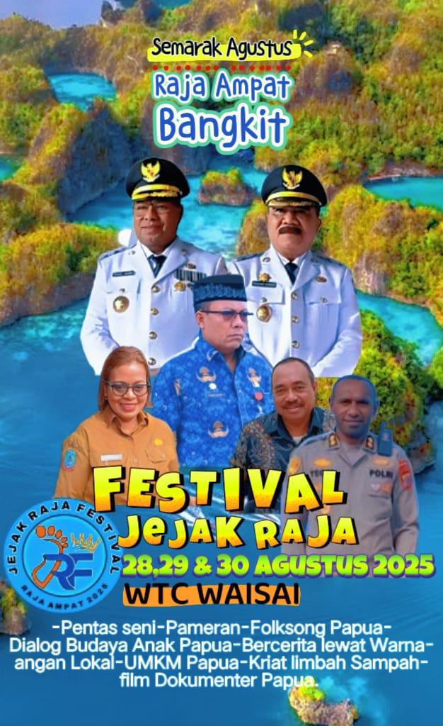 “Kami dengan sukacita mengundang seluruh masyarakat Raja Ampat dan Papua Barat Daya untuk bersama-sama menghadiri Festival Jejak Raja. Mari kita rayakan kebersamaan ini dan tampilkan jati diri budaya kita kepada dunia,” ujar Bupati Orideko saat menyampaikan ajakan resmi dari Kantor Bupati Raja Ampat, Kamis (21/8/2025).